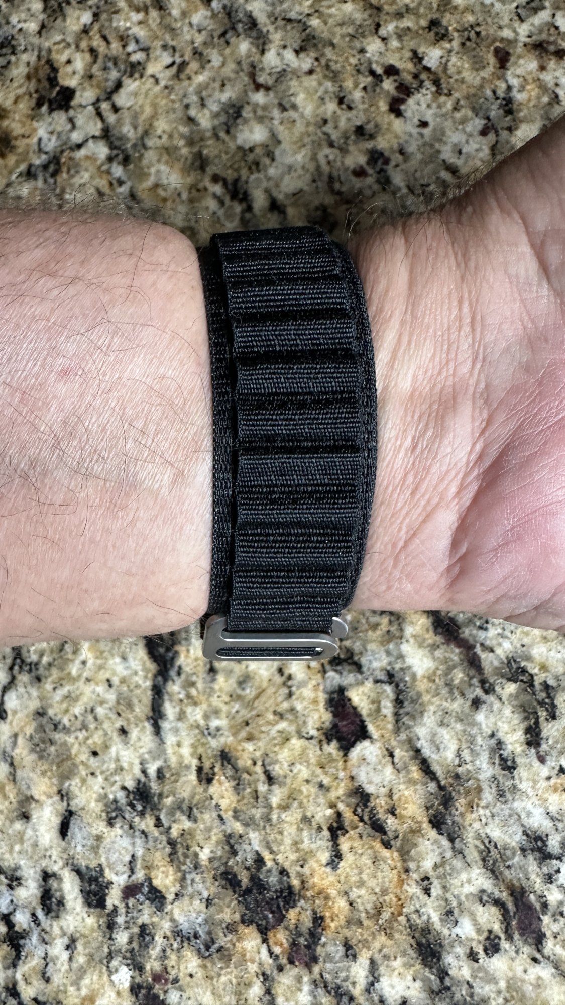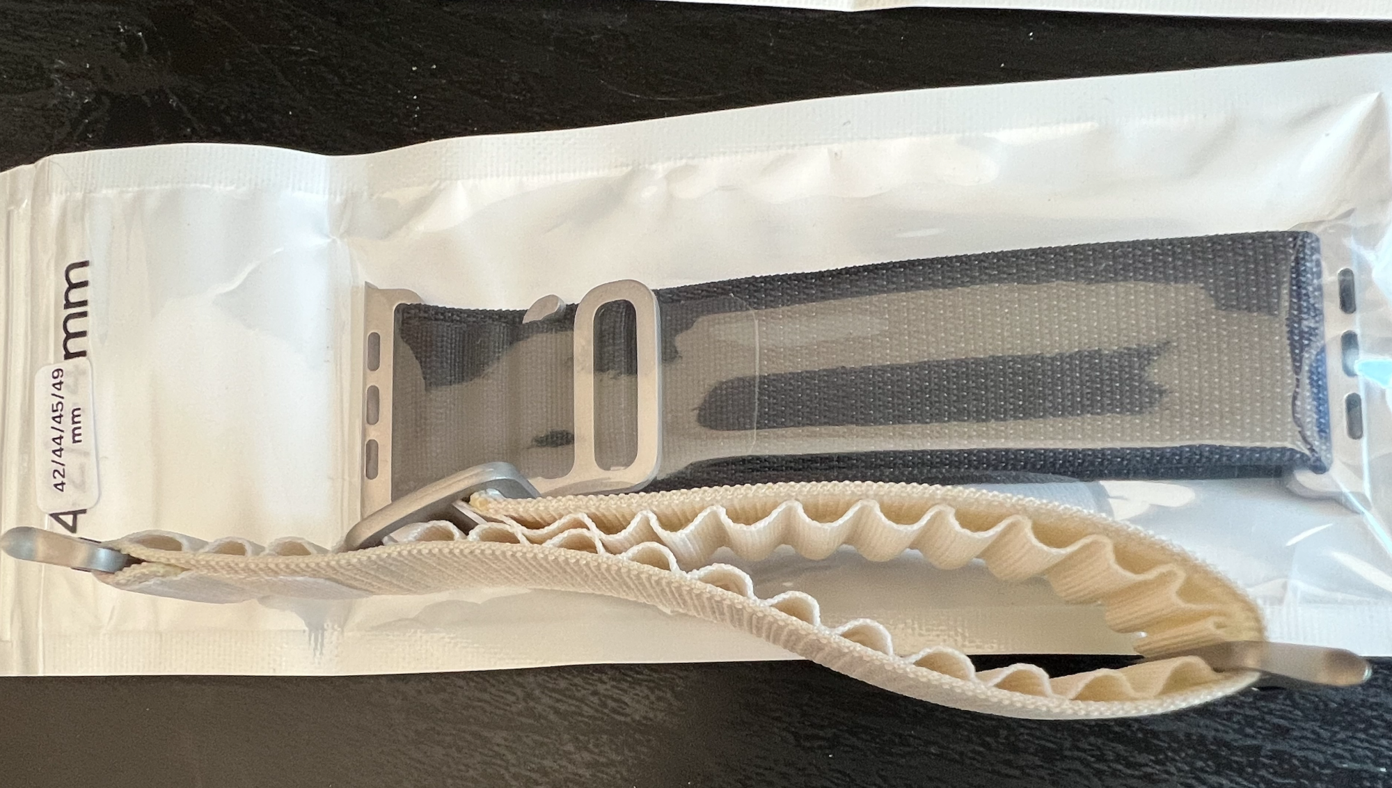 As for the fake Alpine (on the right) I got to compare, it’s close enough to make it awesome for the price of $5 vs $99. The fabric seems cheaper and shiny, giving it a plastic look compared to the nylon. But I may never have thought that had I not seen Apple’s intended look (on the left). Also, the third party color is not as neon as the first party. Lastly, the metal finish looks less rough, as if it’s paint on some regular non-Titanium (which would make sense at this price).