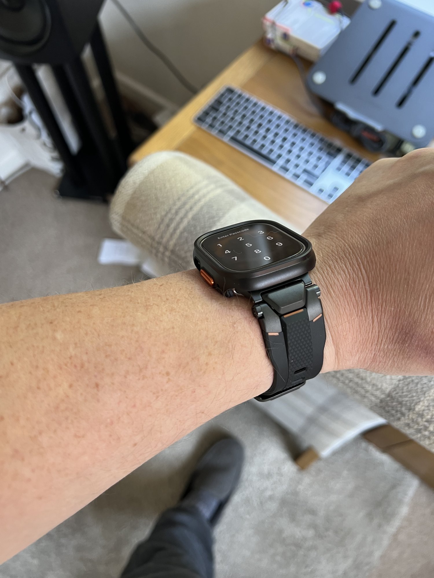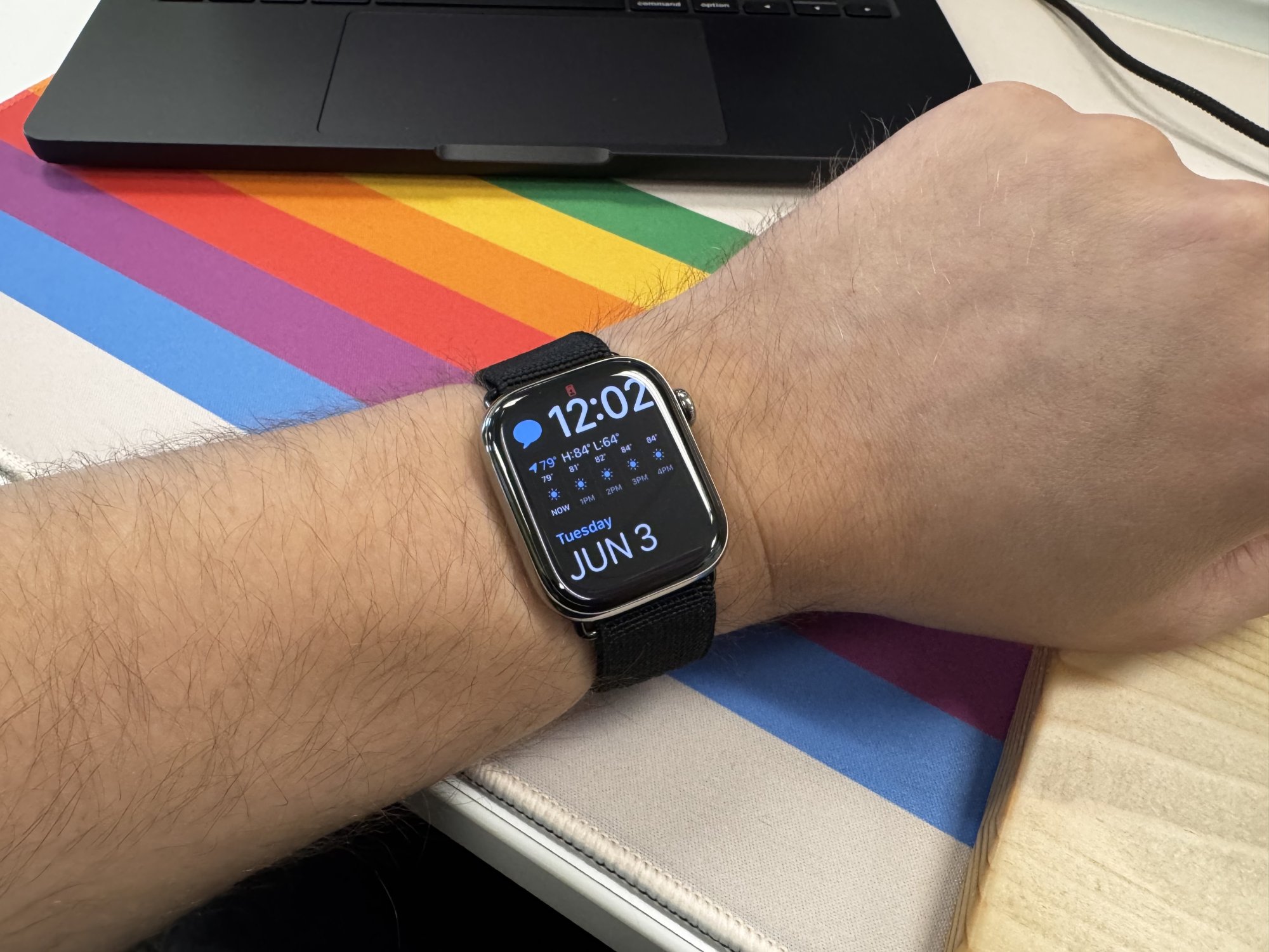 Nice! Is that a retro Apple rainbow 🌈 mousepad or desk pad? Looks nice with that MacBook Pro?My Chrono-Grip came in a month or so ago and I've been rocking it daily. The band is very stretchy and it keeps the watch perfectly planted on my wrist. Zero discomfort and it handles sweat well. Would highly recommend!