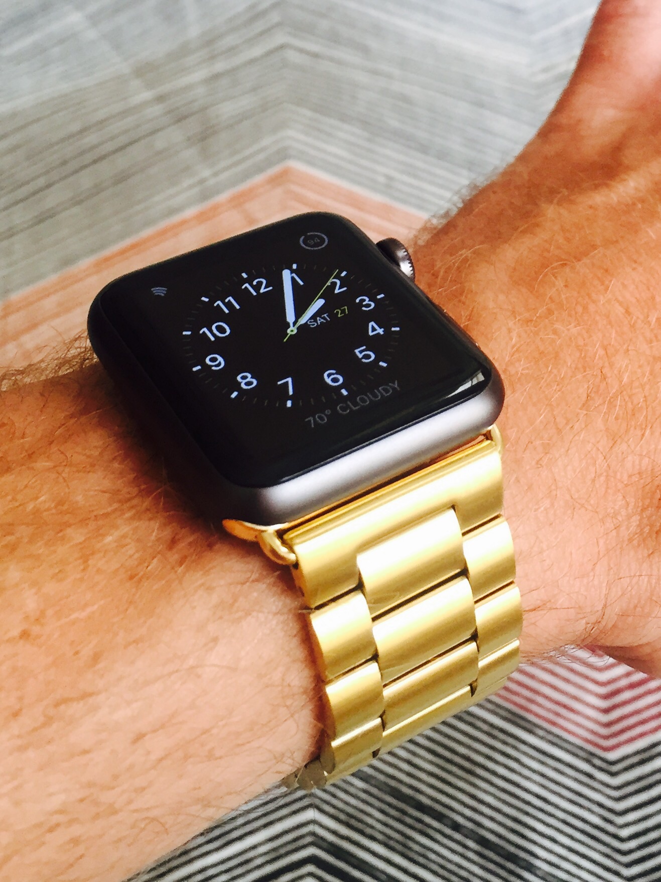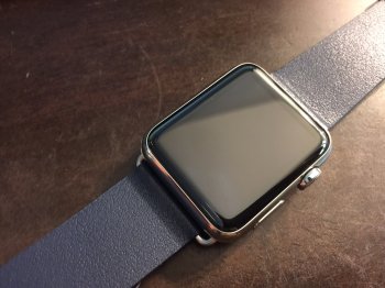 Any chance you can take a photo of the band on the watch still? I would have thought the blue would have looked nice on stainless. One of the color purchases I have yet to make for my SS Watch. The band he sells is pretty inexpensive. What did you think of the quality? Side finish of the leather? At first assumed the adapters on it are the same they sell but maybe not if the band comes packaged with the adapters. Are they polished stainless or matte?