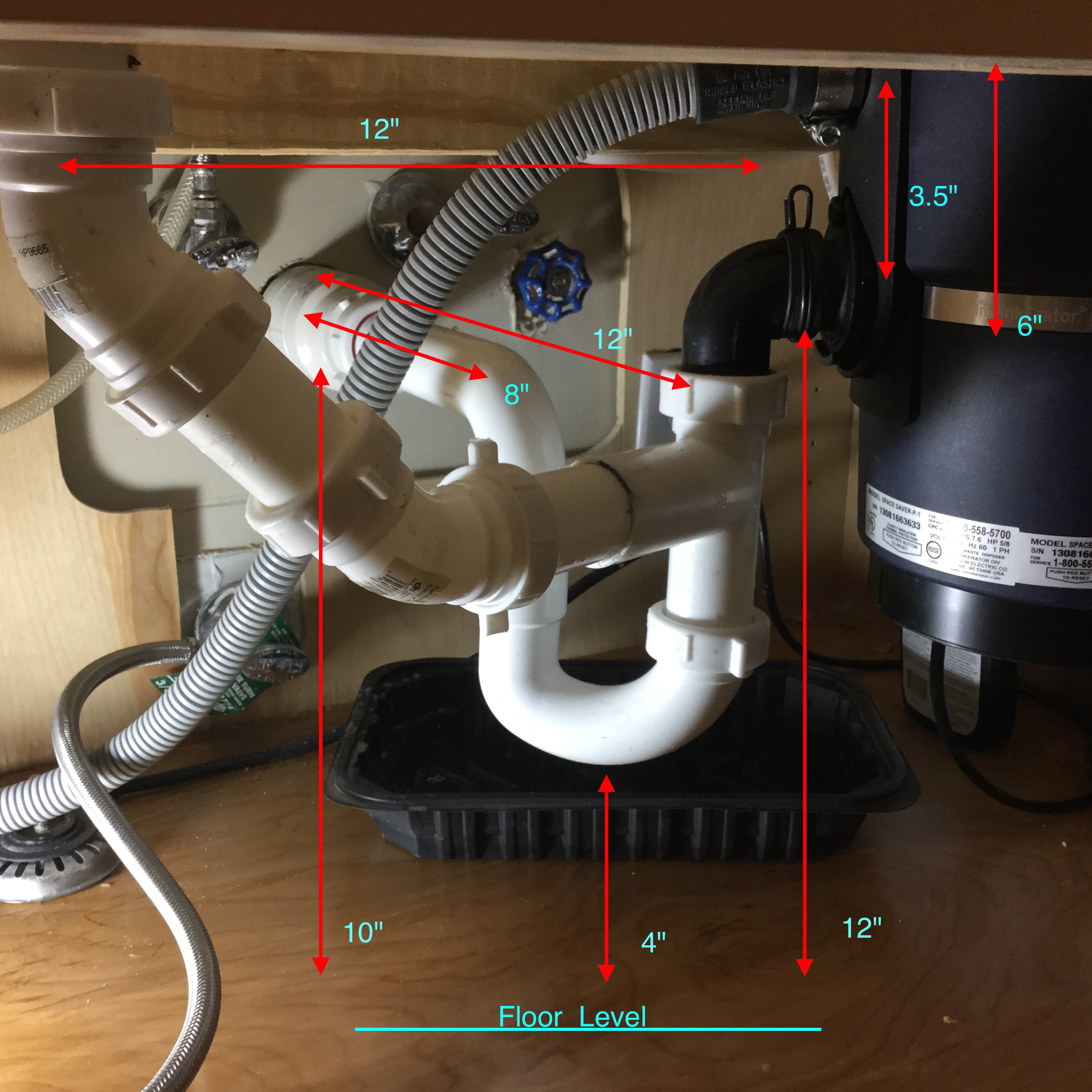 - Look for a shorter garbage disposal, but the disposal part above the motor is 6" tall. Overall shorter I don't think this would help me if the drain height remains 6" below the bottom of the sink.
