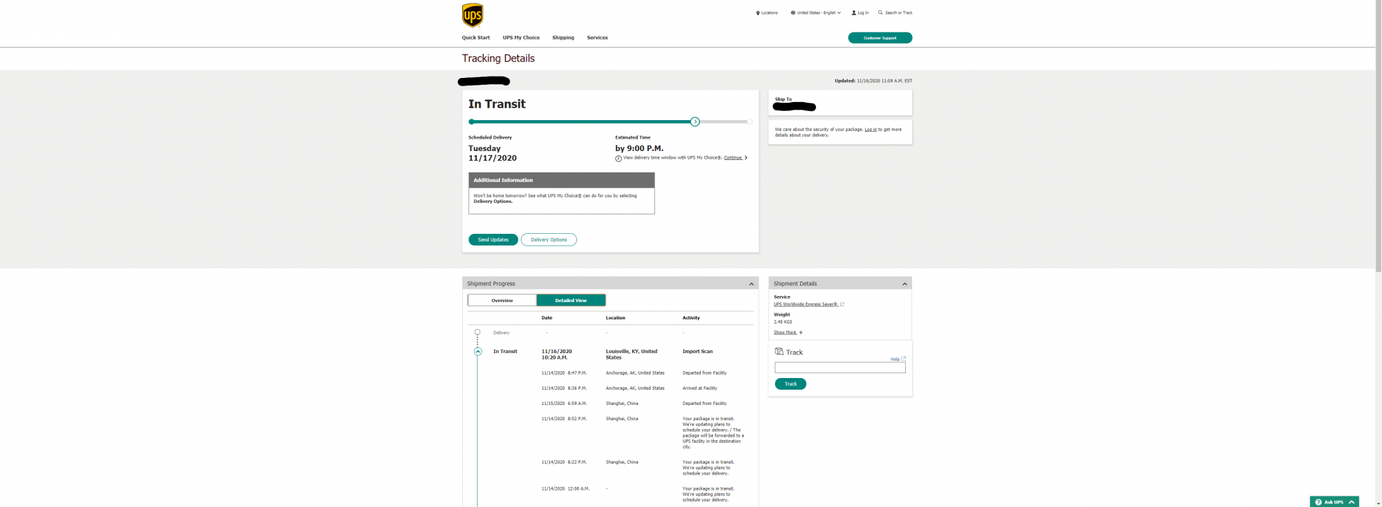 same thing here. No movement. Last "departed Anchorage" on the 14th.Looks like my Monday delivery isn't happening. As of right now I haven't had any updates since departing Alaska, other than a notification that the customs agency released the package. My guess is that it's sitting in Kentucky and will start moving later today for delivery tomorrow. Same scenario with my recent iPhone order. Delivery showed it was coming the day before release but it sat in Kentucky for two days and didn't leave until the afternoon of the day before release date.