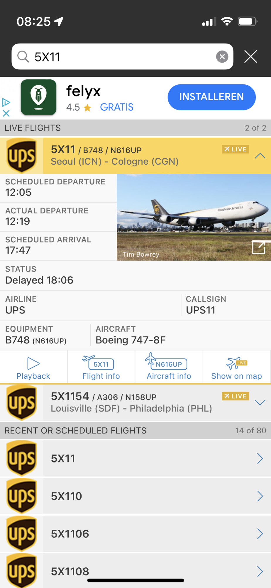 Also notice that 5X11 is just the callsign, meaning even if the current machine doesn't have your MBA and is on the way back to Seoul (as 5X20 I guess), there's already a new 5X11 arriving in Shanghai as 5X10 changing to 5X11 for your package.