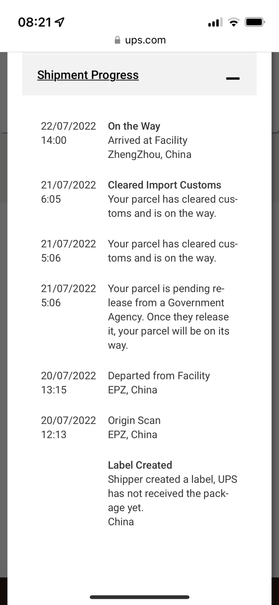 Sucks. Mine’s been sitting in ZhengZou since yesterday morning, and hopefully goes on a flight to Seoul tomorrow but still won’t be on its way to Europe by Tuesday 😩
