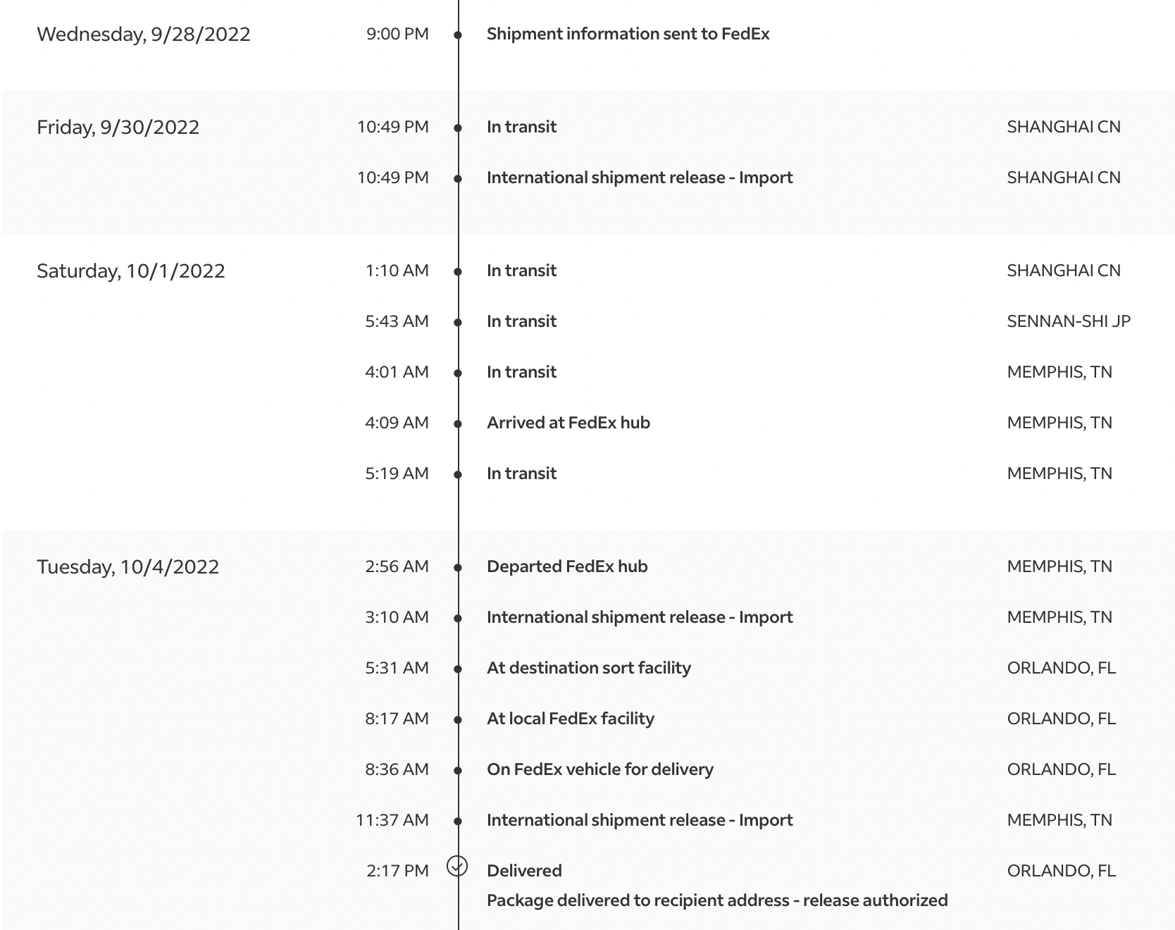 Ordered - 09/26/22 | Scheduled for delivery - 10/10/22