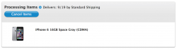 My 16GB Silver 6 is still on "Processing items." I ordered at 5:21AM EST and there's a soft charge on my cc account.