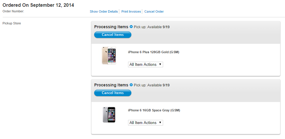 I ordered 2 phones, a plus and a normal. This was 2 separate orders at 12:30am from iPad app.