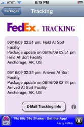 Is that local time or Alaska time? Because if it's Alaska time yours and mine arrived at the same time... but mine hasn't "Left FedEx Sort Facility." What client are you using for tracking?