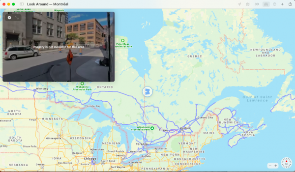 Same here. Justin O'Bierne also posted that Look Around has been added in Toronto, Montreal, Vancouver, Calgary and "other areas in Canada". Hopefully this is a sign of Look Around releases speeding up. That's a pretty decent number released at once.Not here...did two hard restarts and nothing...