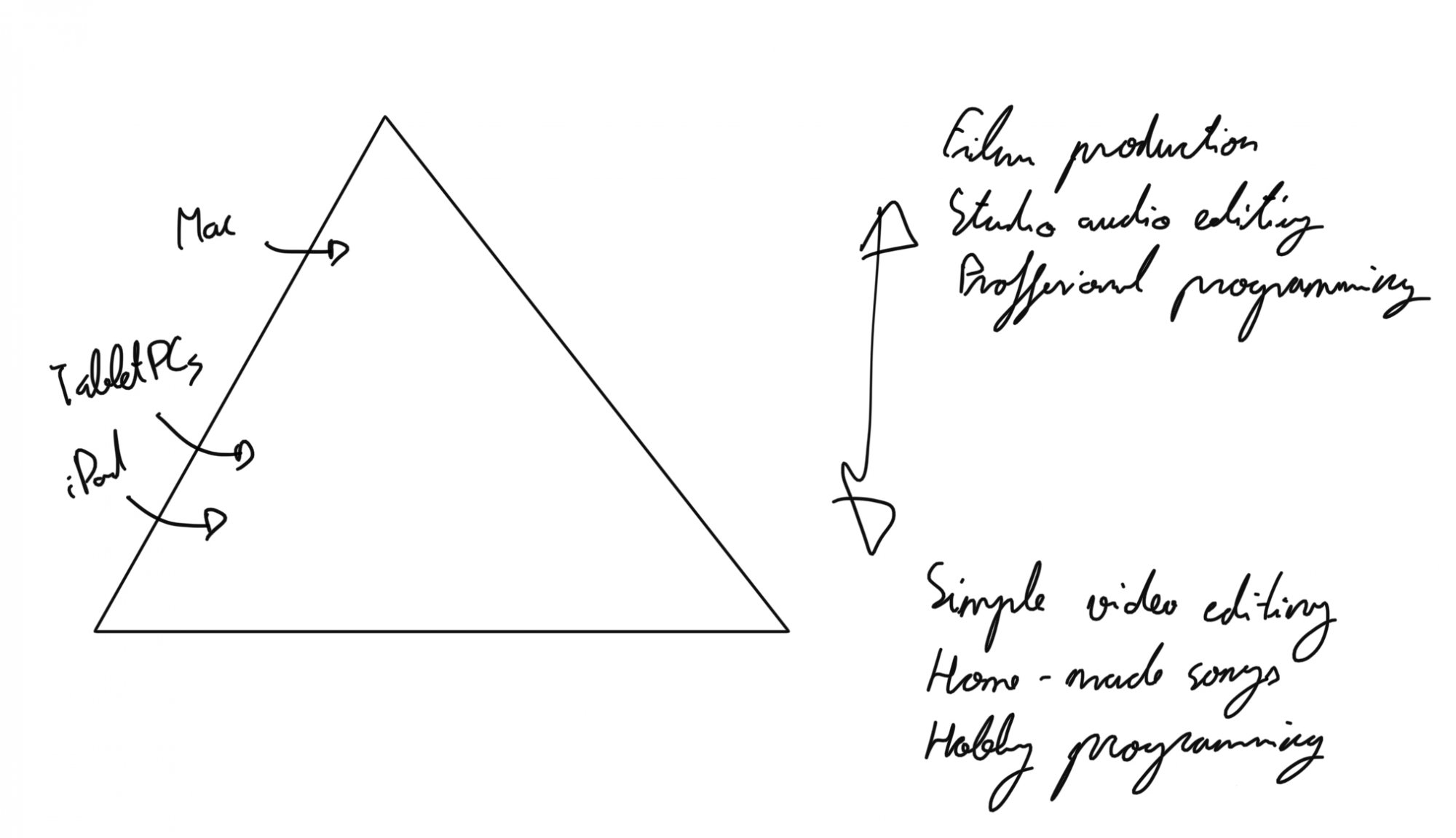 In summary, the problem is not that Apple is not progressing in the proffesional range; is that we’re talking about different proffesional ranges. And I work in one of those traditional fields, but I know that a tablet that handles it good is not feasible (tabletPCs have showed it). The Mac Tablet some people want is a much more boring concept and less useful than an iPad.