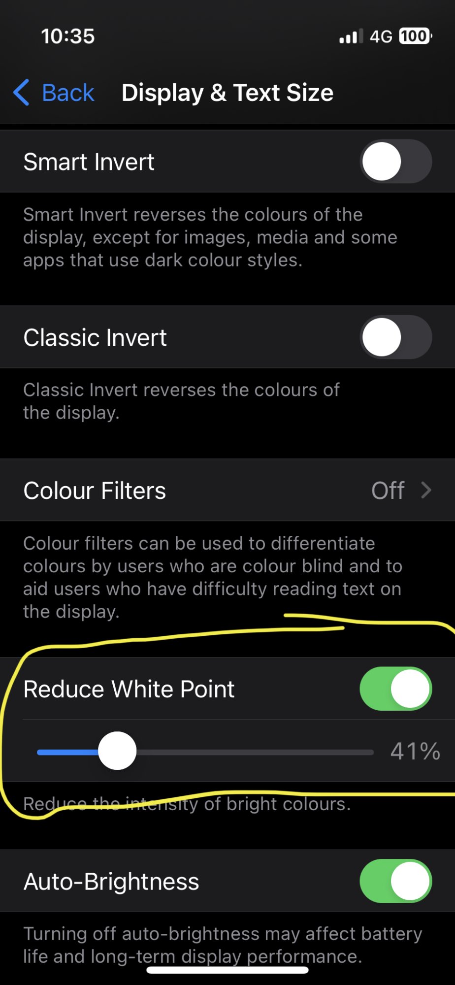 Also, @twdawson you can assign this filter (reduce white point) to a triple click of the side button, to lower the brightness quickly whenever you need to.