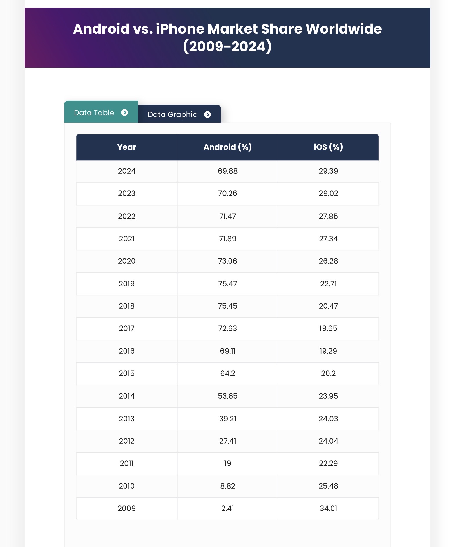I think it depends on where you get your data from. Then we are also halfway into 2025 so we should include those numbers too...No they haven’t. The market share trend over the last 5+ years worldwide and for the last 10 years in the US is exactly the opposite of your assertion. Anecdotal commentary based on a small percentage of tech-centric users in one’s personal circle or online forums doesn’t not represent reality. Most folks who find the new UI less appealing won’t switch because the cost of overturning their ecosystem (remember, we’re talking average tech literacy here) is much higher than any temporary disdain they have for the new aesthetic.