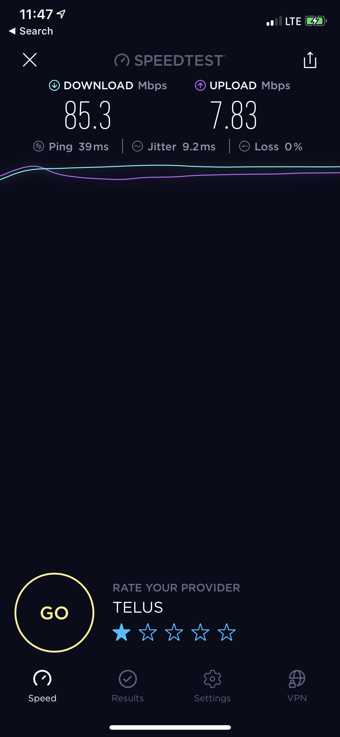 iPhone XS Max 68 mbps down