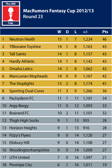 Clearly people must just feel they have to really raise their game when they're drawn to play me....look at those Sporting Dual-Cores for example, made more points than anybody else, yet not even top 8. We must be some amazing managers up there![]()
