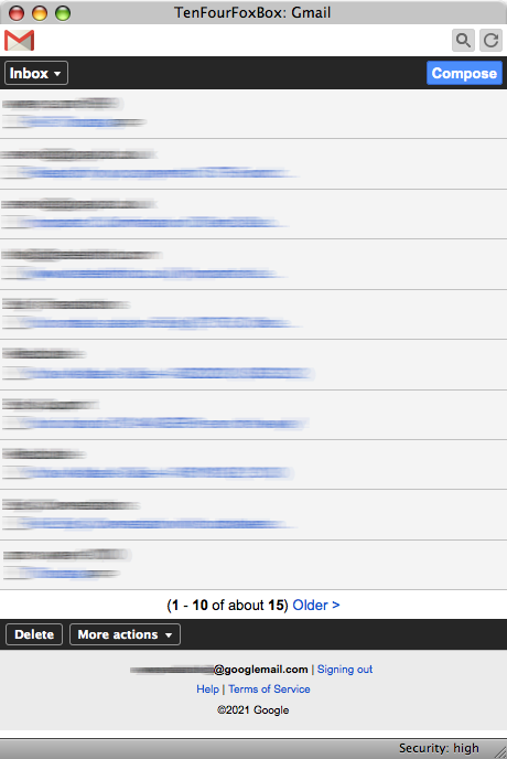 Gmail - Using a Nokia N90 user agent this gives a very compact rendition of Google Mail.