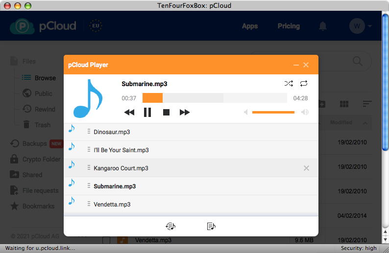 pCloud - Portal to my personal cloud storage.