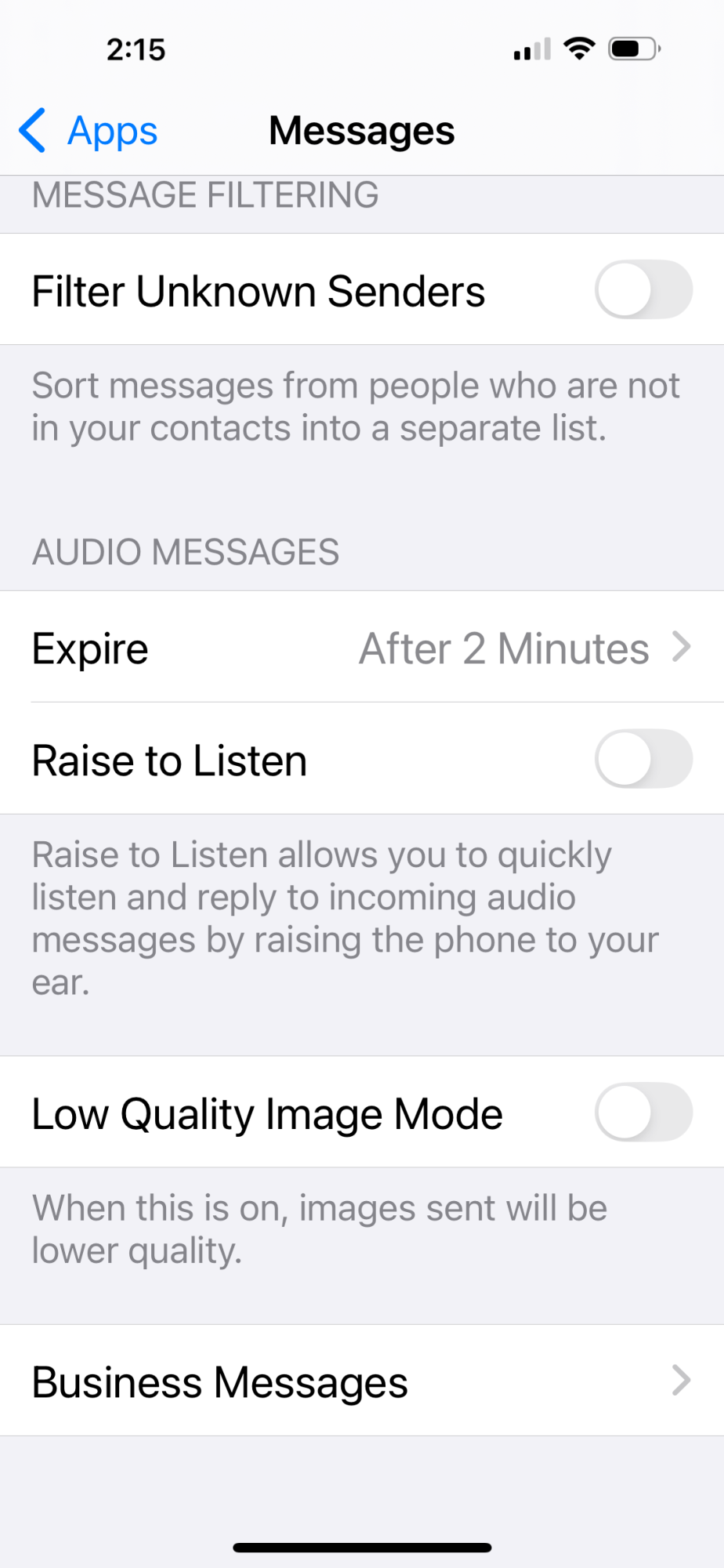 Has anyone else found the "Never" option missing? I wish there were an easy way to back up audio messages.
