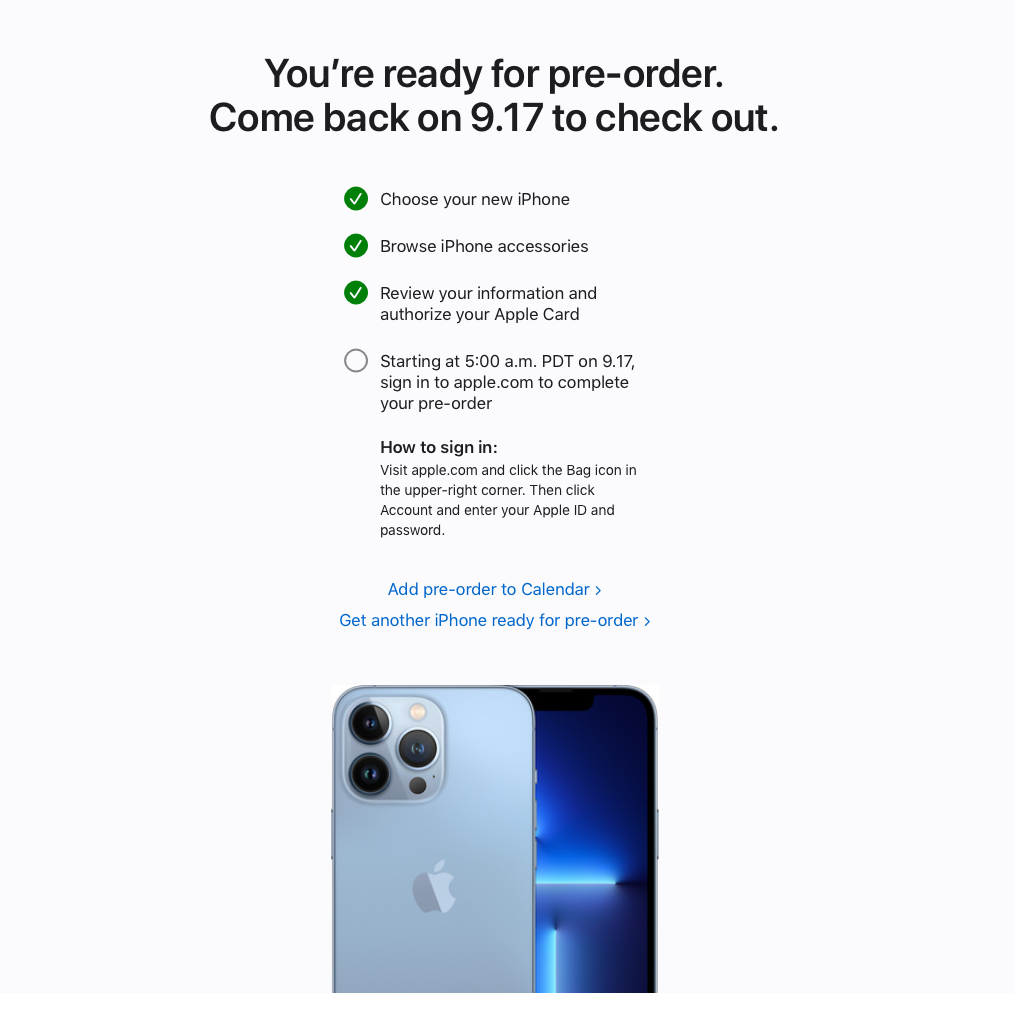 Faster checkout times, so in theory it gets you ahead of everyone else who still needs to click through the options. Delivery dates are also based on when Apple processes your order, so there is that advantage.I just did the same. The preorder of a preorder 🤣 anyone know what advantage this holds?