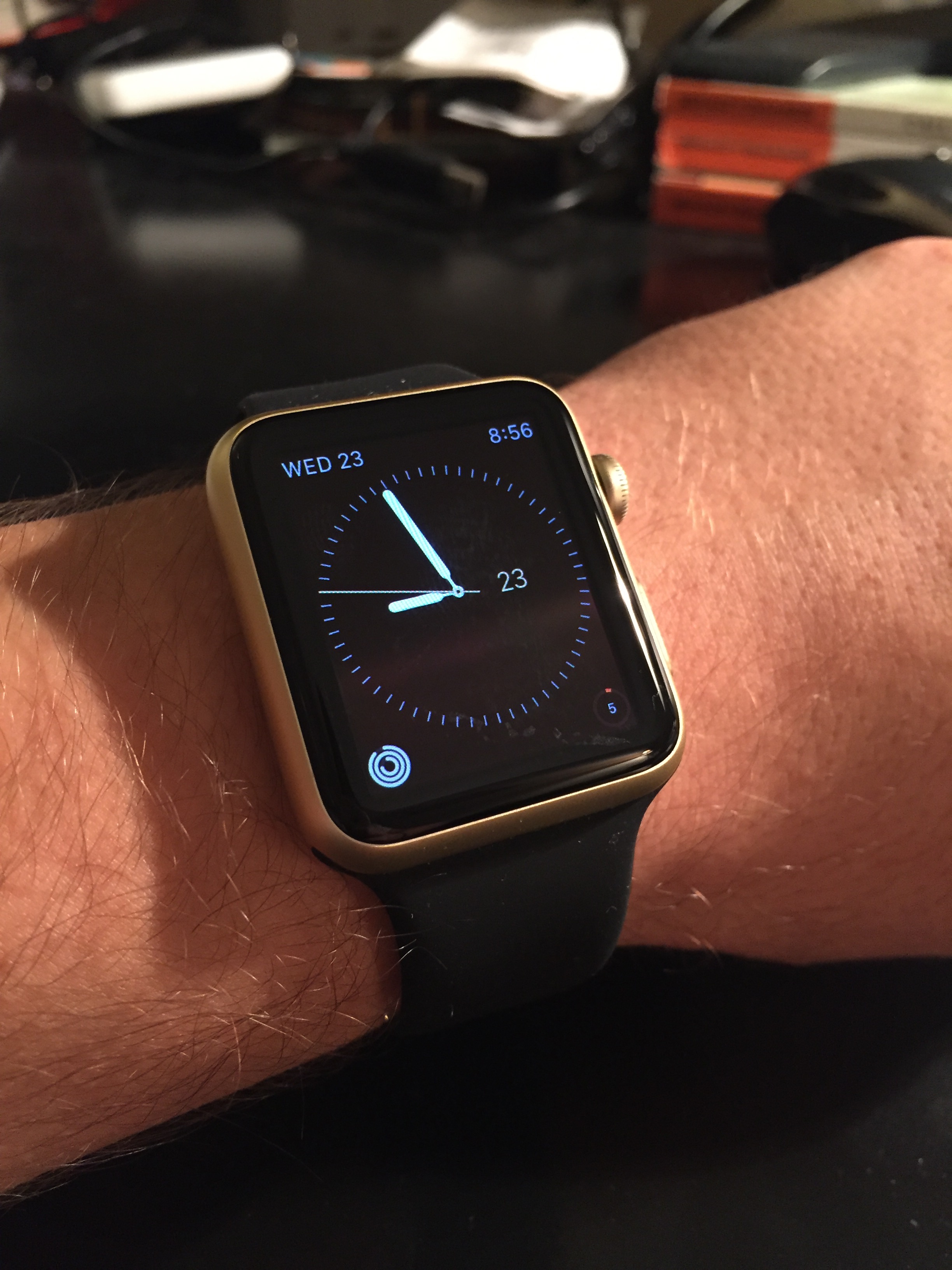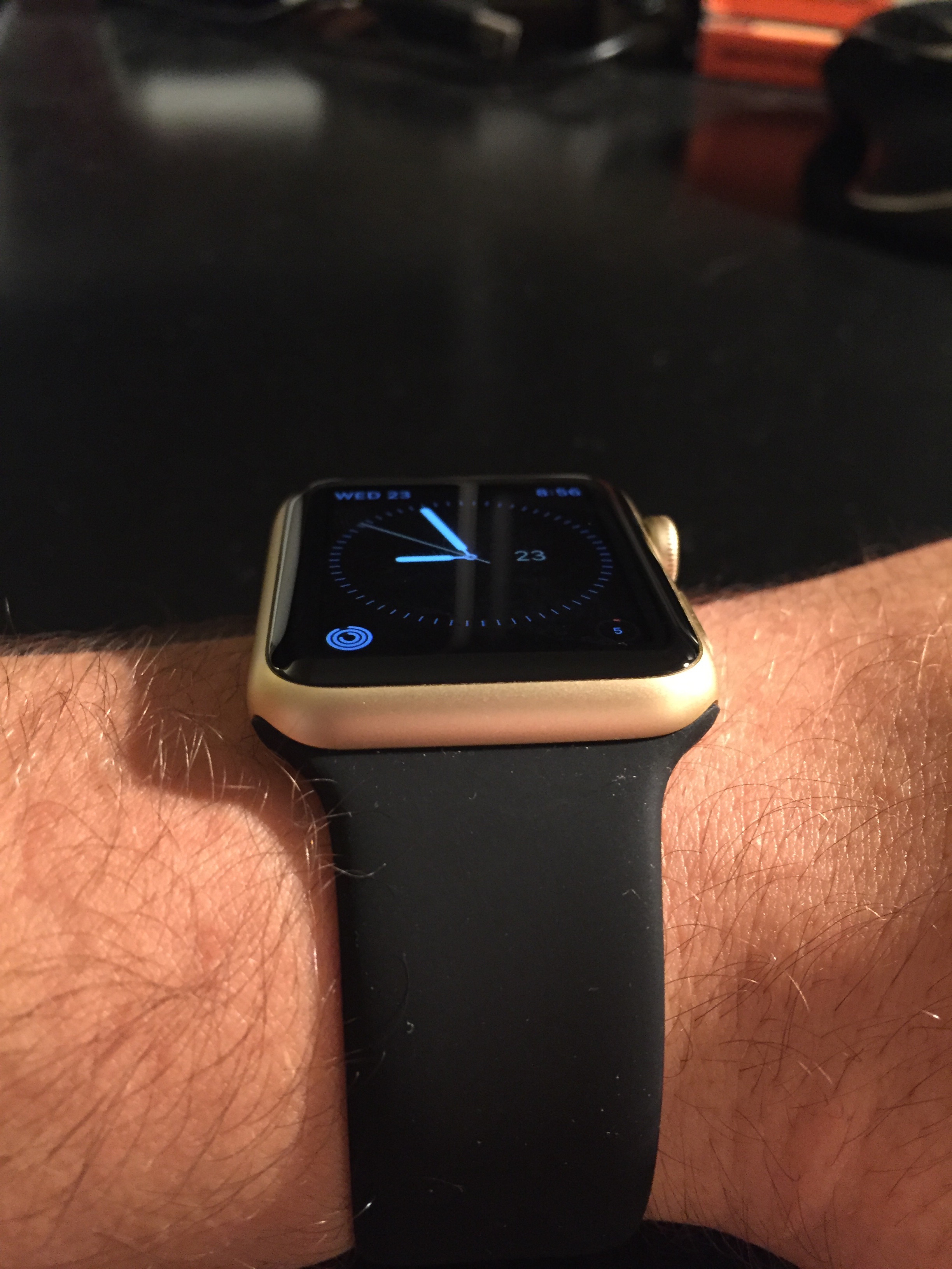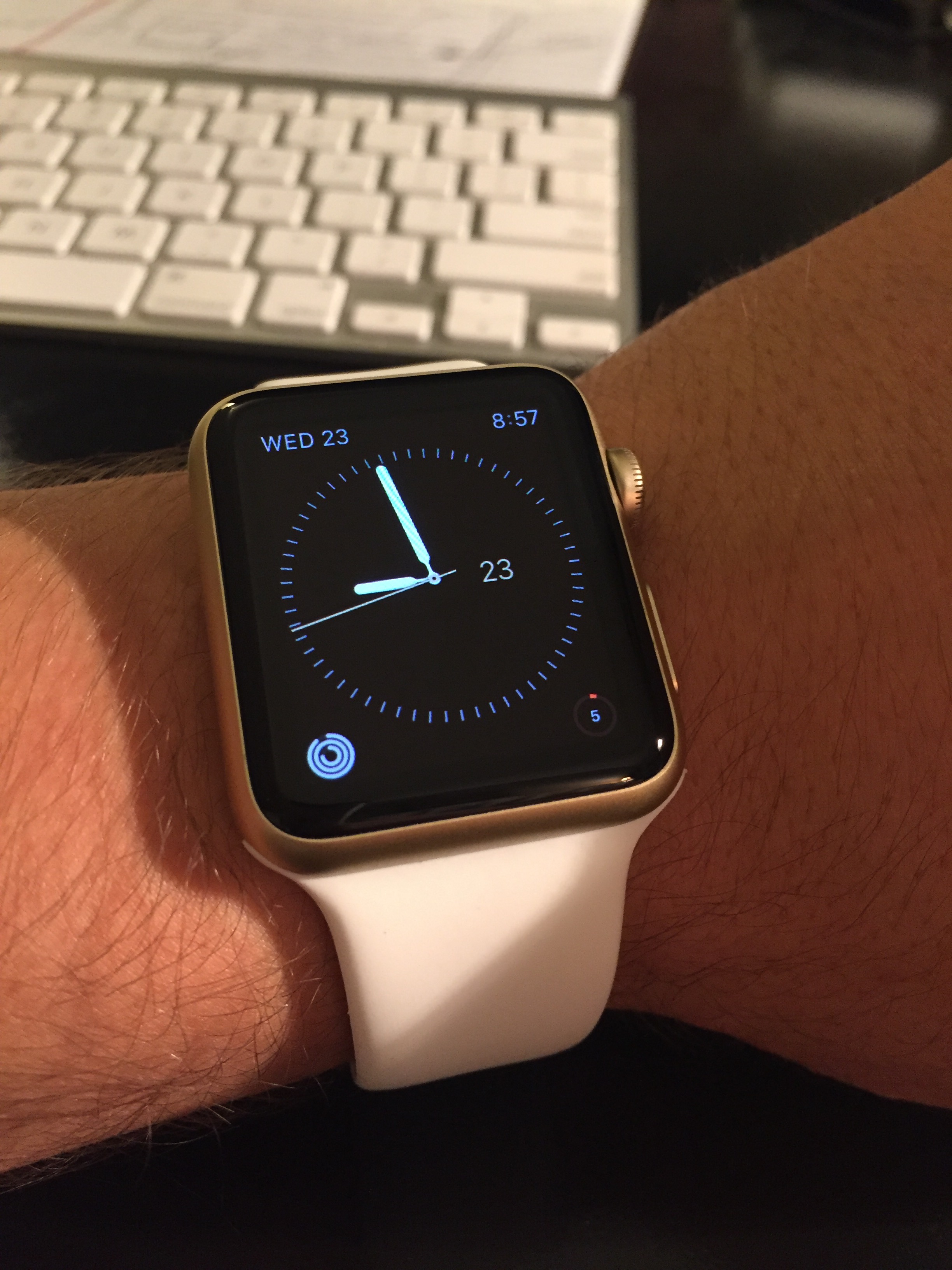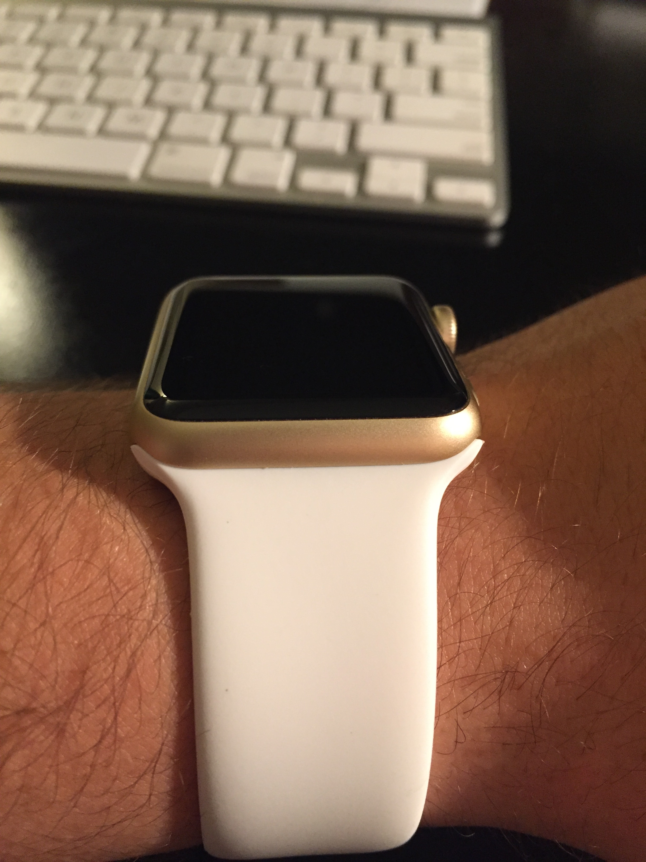 Yeah, I have one. It looks good - kind of understated (at least compared to the shiny ones) in my opinion. I'd post pics but I'm sure some people with nicer cameras who like taking pictures will be flooding in soon to show off their gold AWS. I'm planning on buying either the midnight blue or black leather loop.
