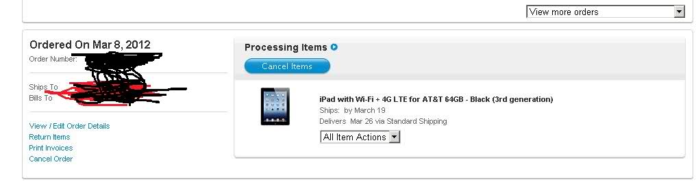 Finally! Just now got my two FedEx tracking numbers for two 64GB AT&T models ordered at 4:00pm EST on the 7th. Tracking numbers not yet active.