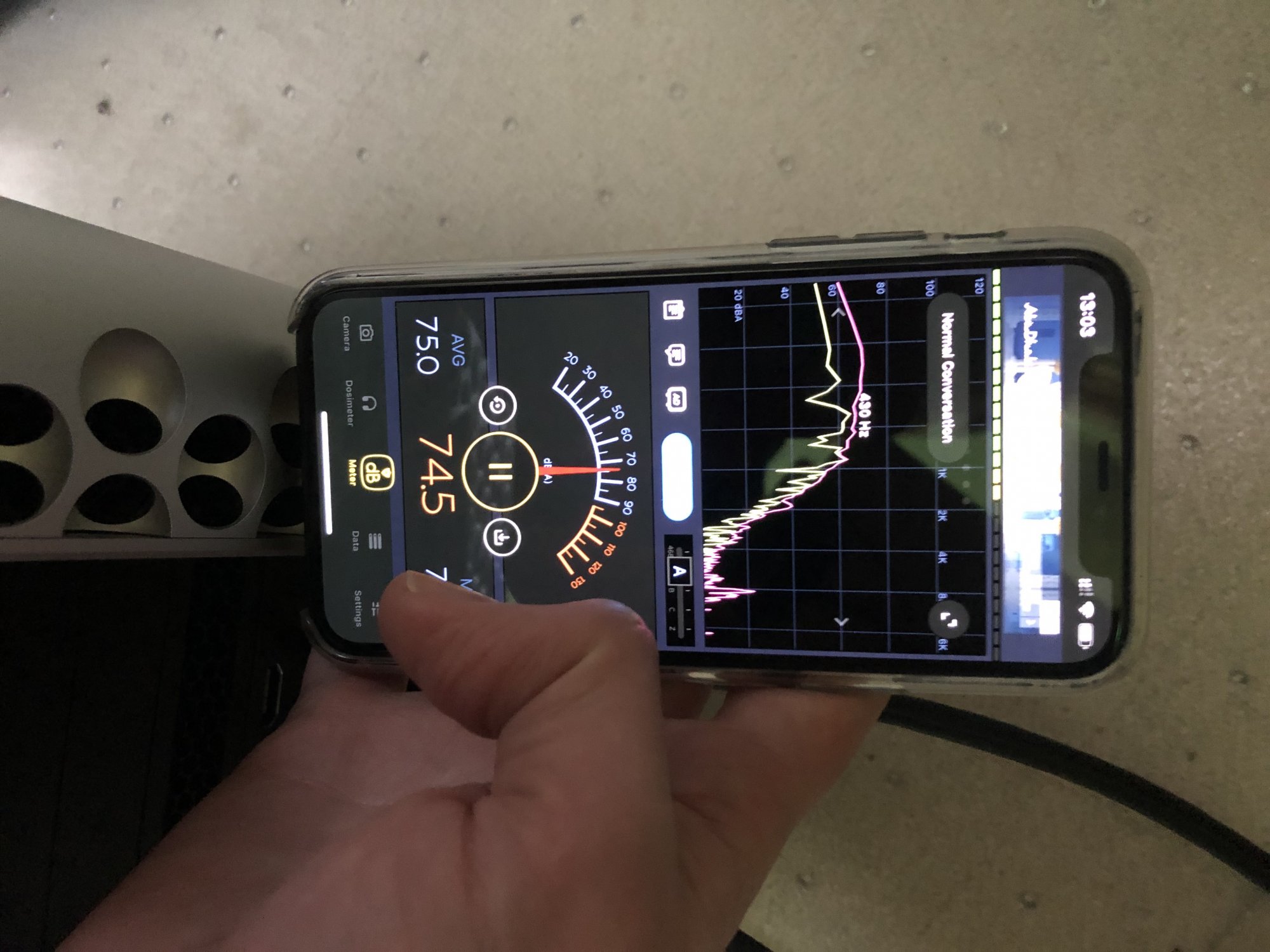 Using the SPL Meter app for iOS (settings: A weighting, slow response, 40db range)