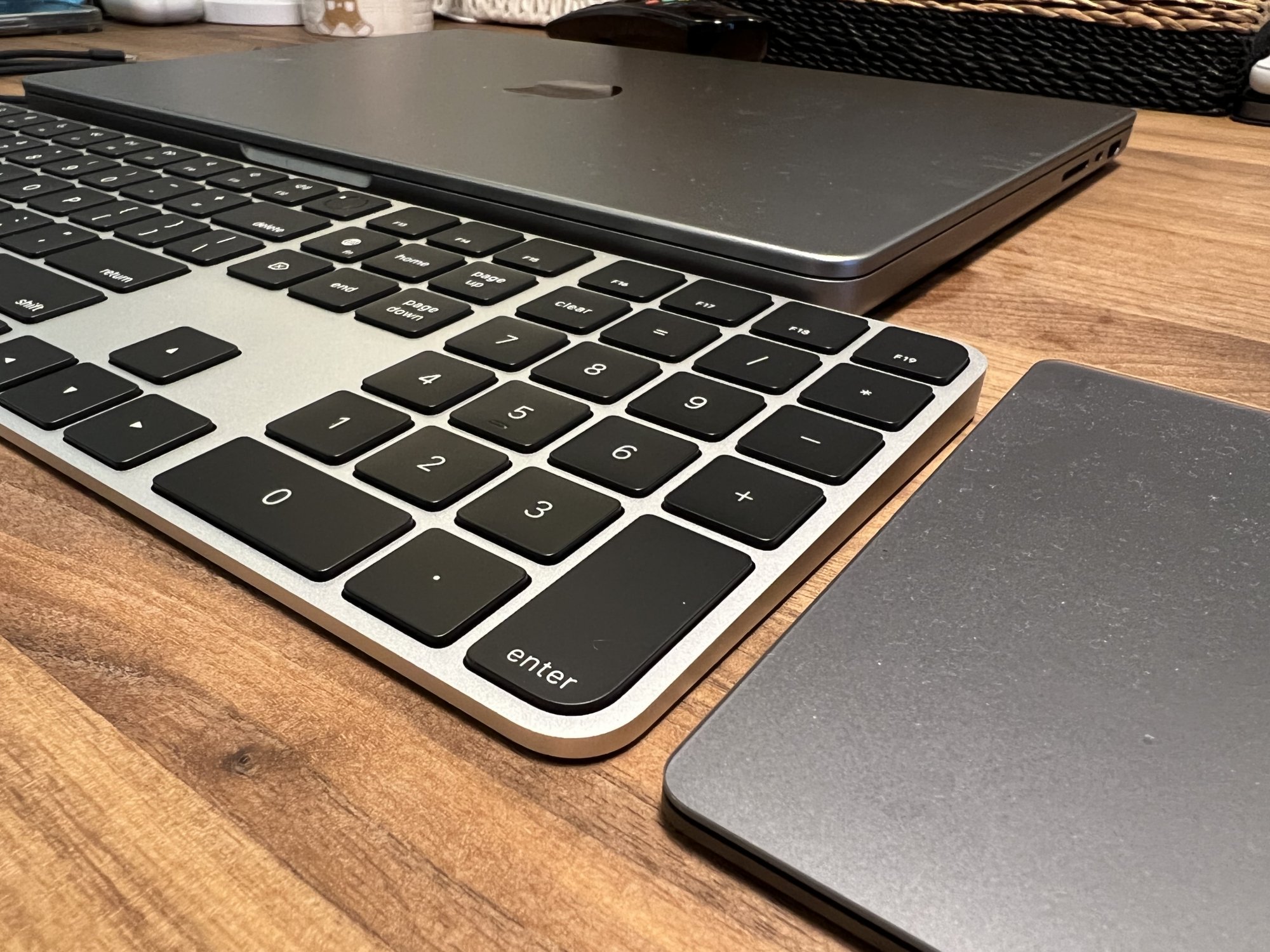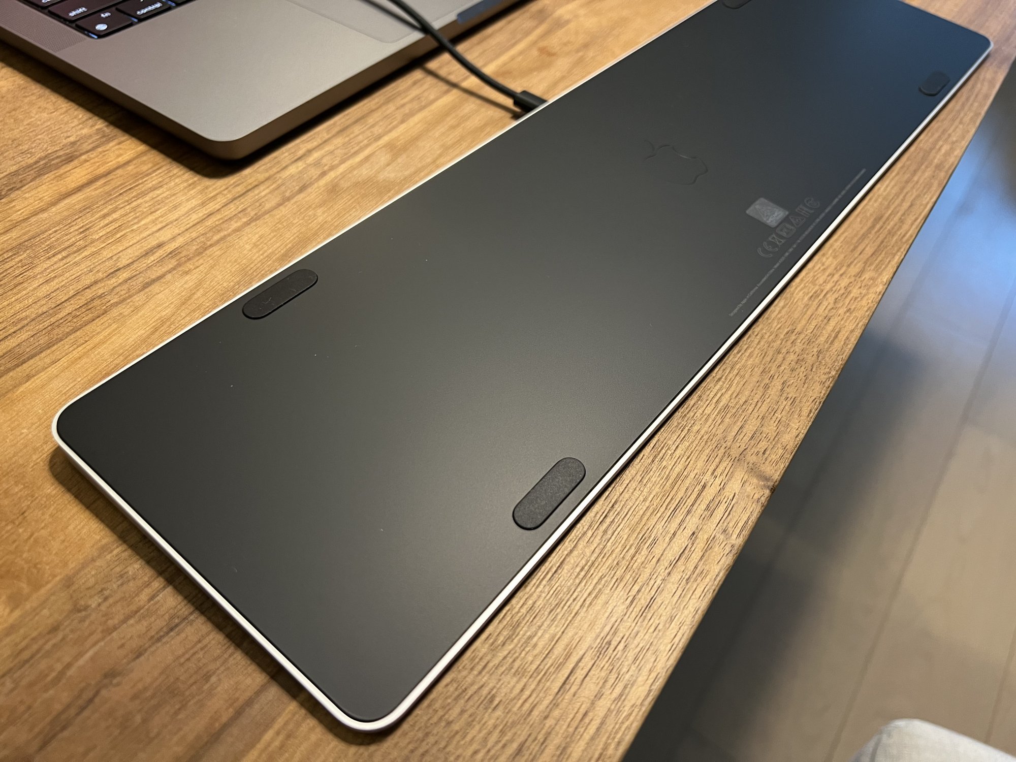 In addition to the very nice style having black keys on silver body and having Touch ID, a pleasant surprise is that the whole bottom of the keyboard is made of a very nice soft black plastic material. The tactile feedback of the keyboard is very good, the travel is more than the old standalone Magic Keyboard, and it's more in line with the feeling of the one on the new MBP (the one in the MBP seems to have more resistance which I don't particularly like).