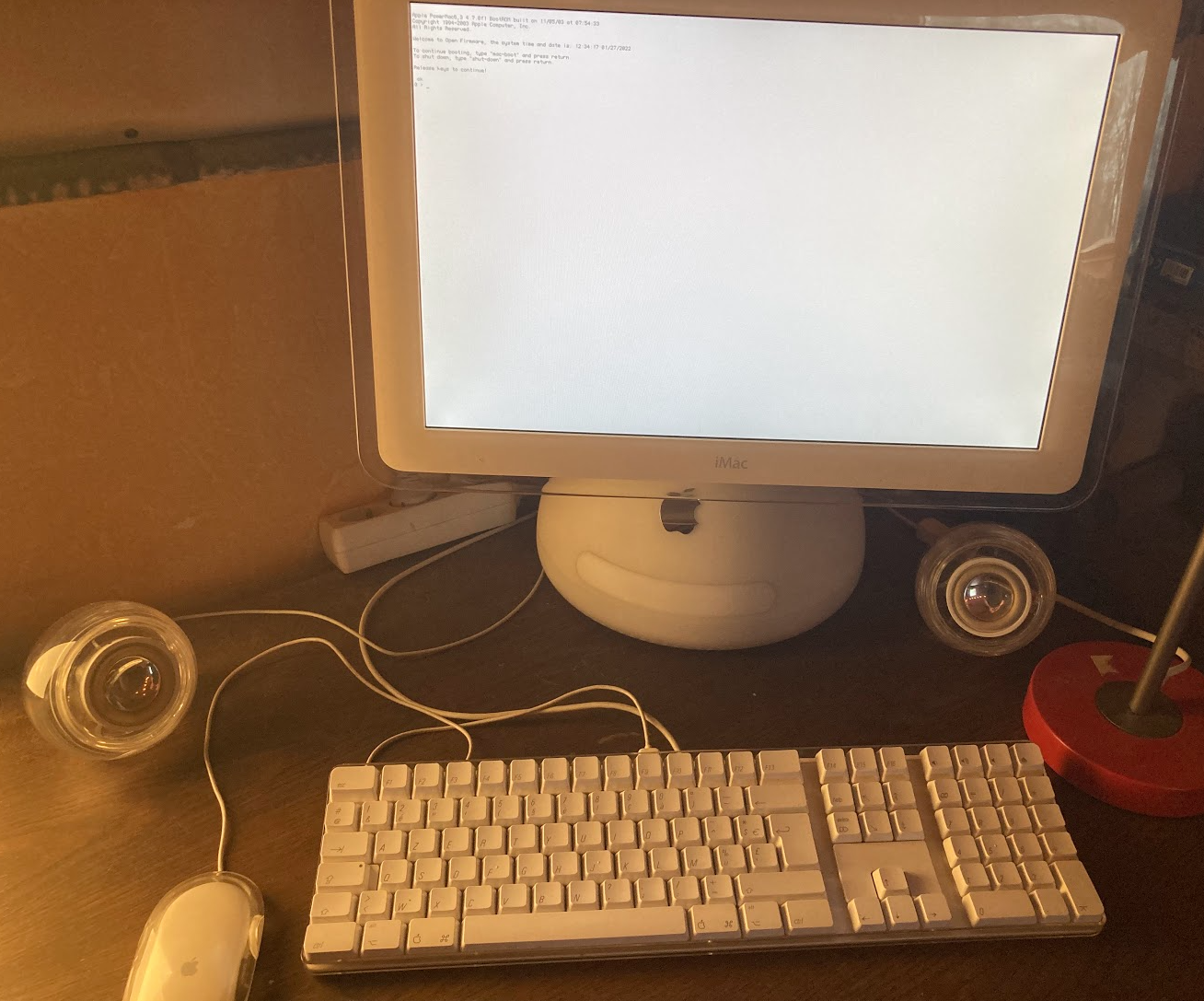 I was looking for the exact string. Is it "Apple PowerMac6,3 4.7.8f1 BootROM built on 11/05/03 at 07:54:33" ?