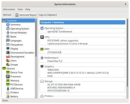 From there, it was a few days getting things installed, and I added a powerpc port snapshot image (from last December 25) to the sources.list . Some things I had given up on, like arctic fox, but then after other things were installed, suddenly it worked. A lot of things are unfortunately in a state of chaos.