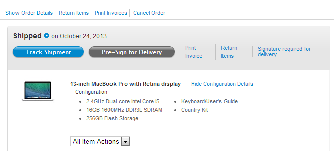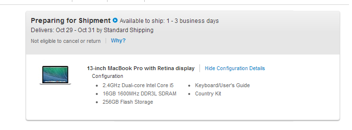 Mine just shipped directly from Shanghai. Will arrive by Tuesday. It's a 13 inch, 2.8ghz, 512 GB, 16 gb ram.
