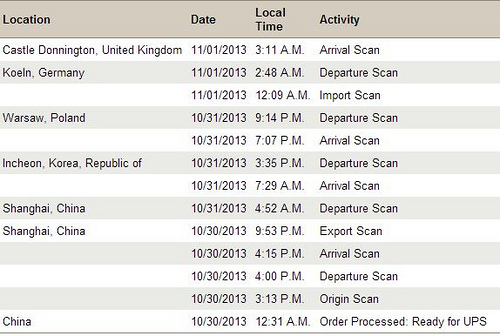 Expected delivery still scheduled for Tuesday Nov 5th. Let's hope for an early delivery.