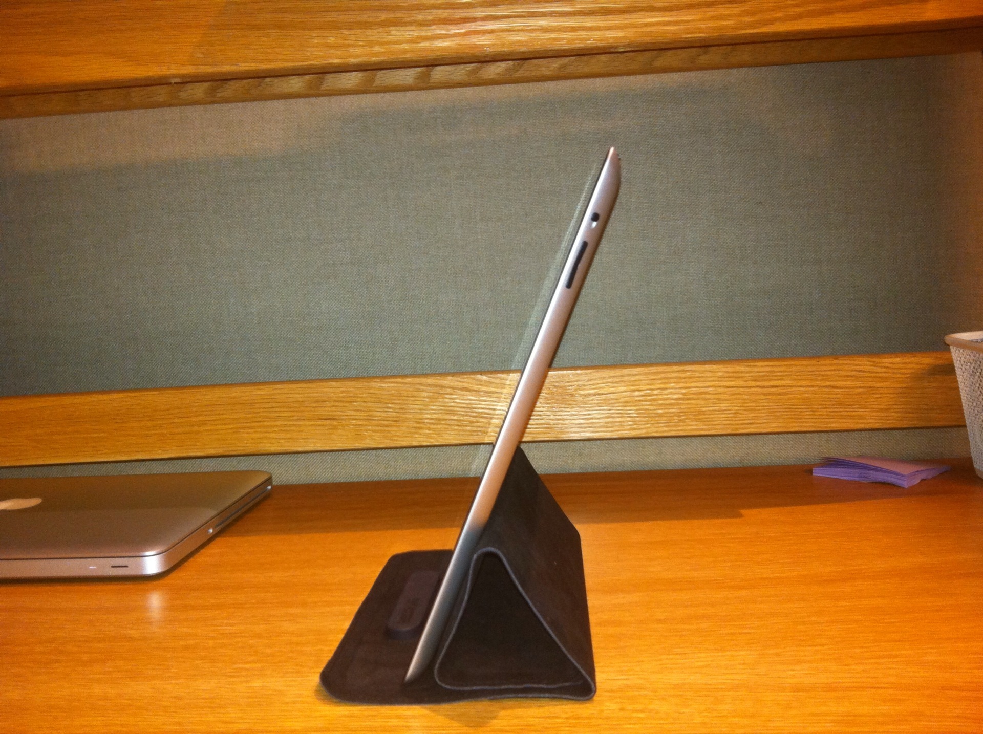 The portrait angle is only slightly better, but has made the iPad fall a few times.