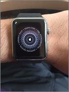 I know some have wondered how bright the blue is. Attached is a photo of the Watch with Blue Leather Loop (Med), Blue Leather iPhone 6 Plus case, Black Leather iPhone 6 Plus case and Black Sport Band on a MacBook Pro.