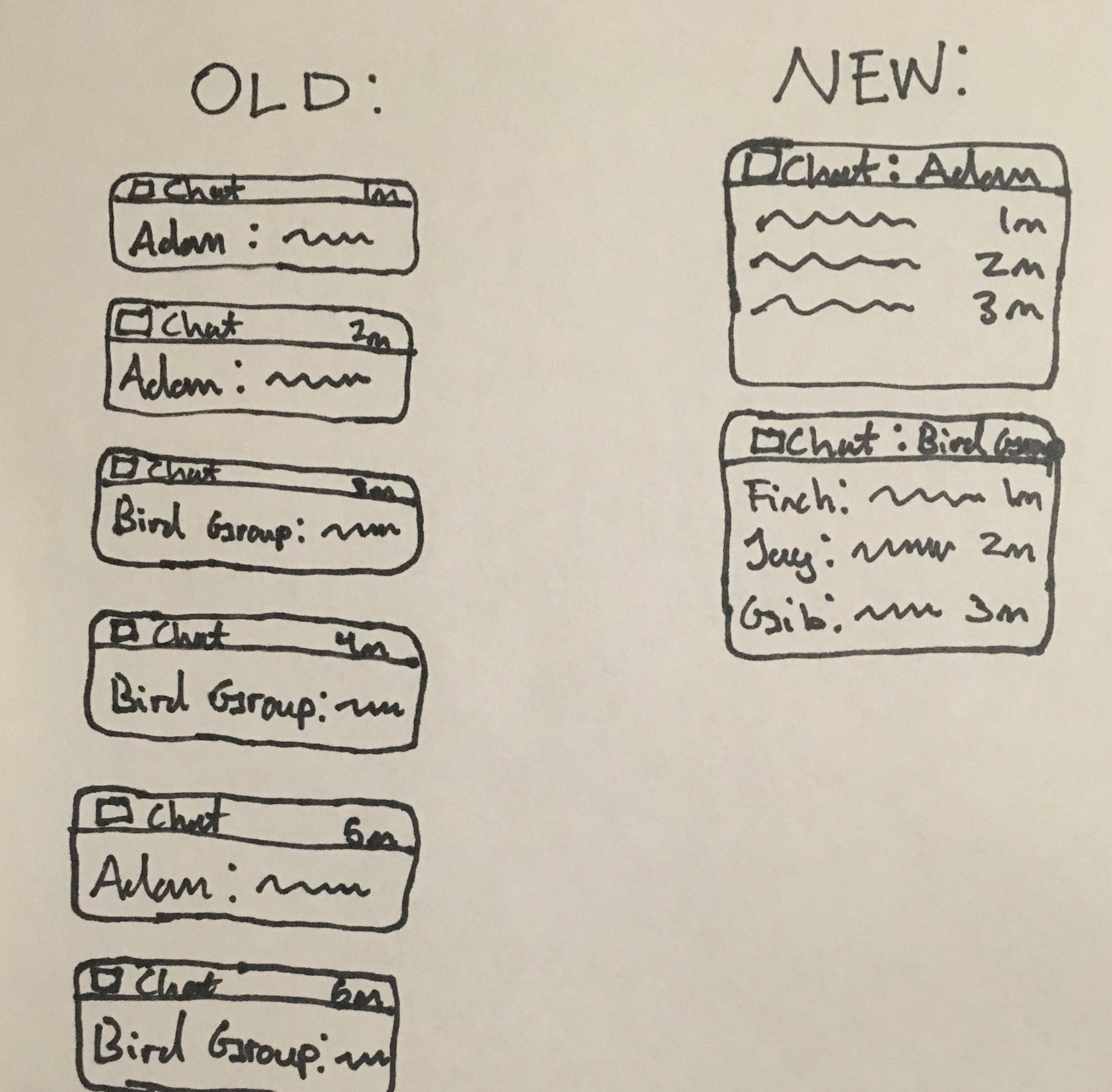 The problem with this current system is that notifications become easily cluttered. An active group chat can result in hundreds of individual notifications. For example I'm in a group chat of friends with about 12 active people, and I have to leave it muted anytime I choose not to participate, due to the amount of notifications that collect. In addition, this means that important information can get lost in the sea of notifications.