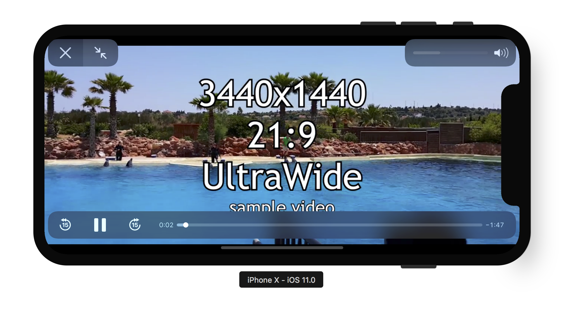 Here are some interesting tests I ran on the Xcode iPhone X simulator. I used the full screen options to pay back all the videos. There was no "zoomed" option at this point in the software, so it is either playing the video like this or playing it in a browser window.