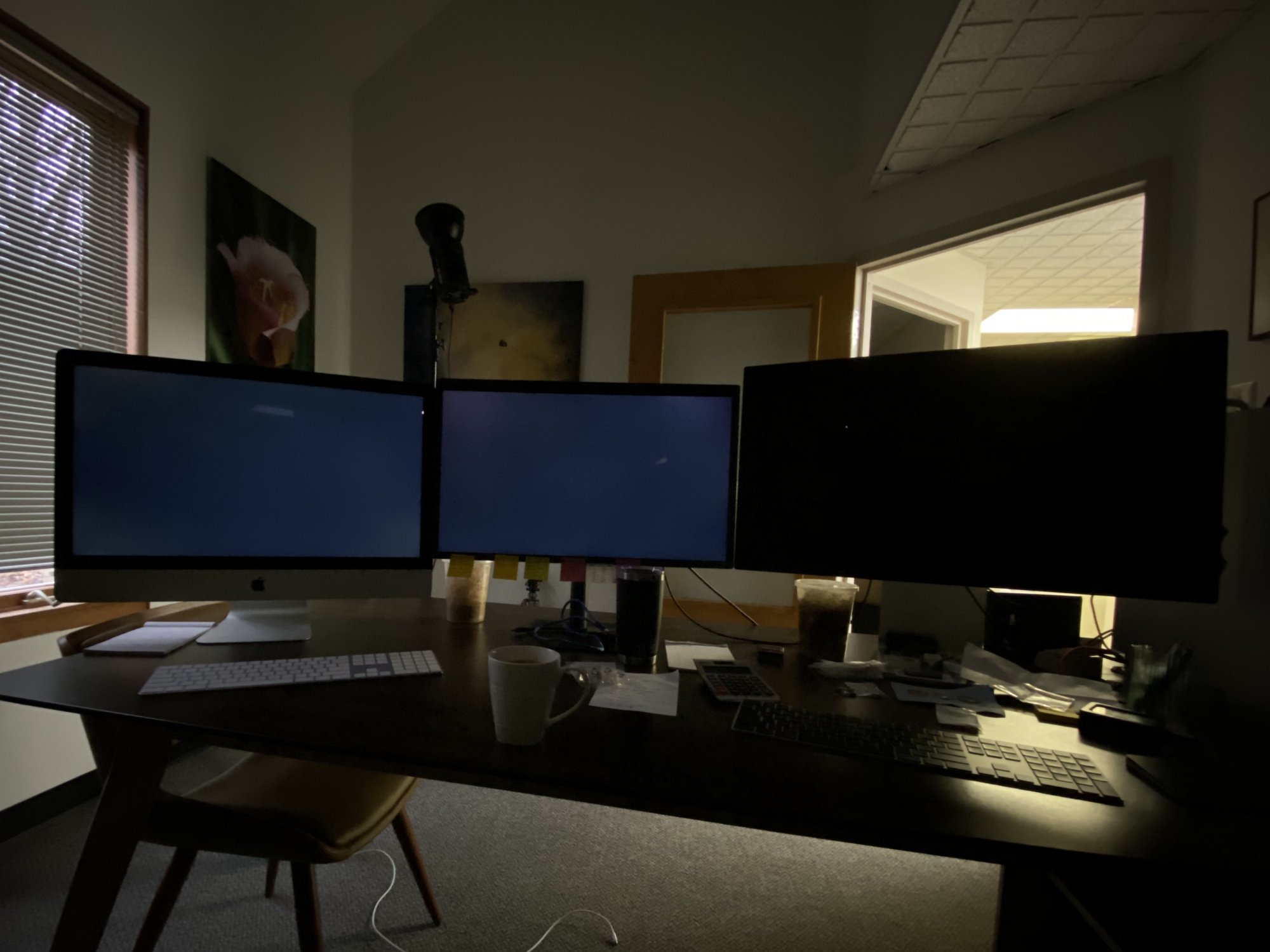 Now for that photo showing how black black really is on the XDR. From left to right, it's my 27" iMac, the 5K LG Ultrafine and then the nano XDR. All with a jet black screen (