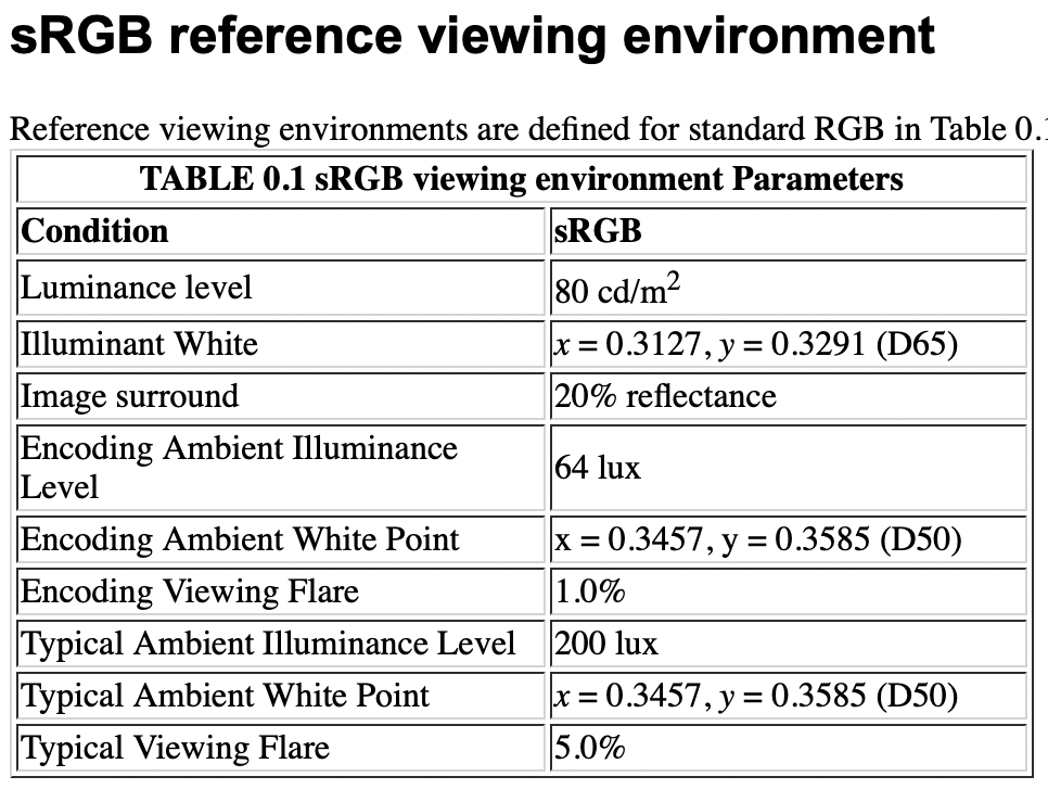 By the way, this is fundamentally misleading. Here's the sRGB reference viewing condition: