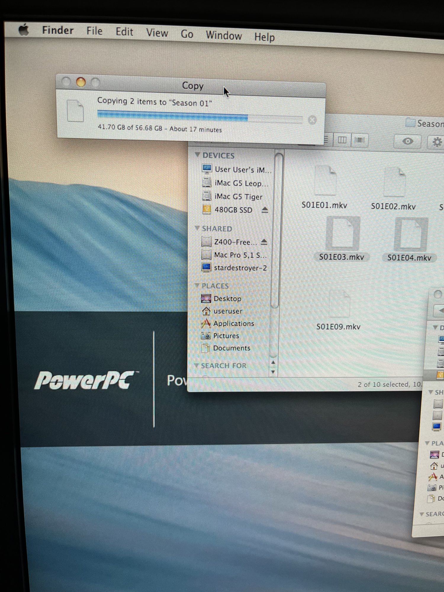 Tonight I needed to copy a rather large TV Series to add to Plex. I got a couple episodes, and had to restart one of the transfers. Instead of sitting and watching it more than likely fail and get irritated, I remembered this NEVER happens on any of my old Macs. So, I copied the files to a USB SSD, and plugged it into my iMac G5. The iMac G5 has been at it for about 40 minutes transferring a total of about 50GB of 4K HDR content. Its slow over USB 2.0. But it works. I won’t have to sit and watch it. It’s always been reliable.