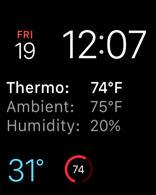 • Complications on the Watch app. Complications show the set temperature, ambient temperature, humidity, HVAC mode and status.