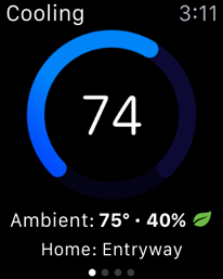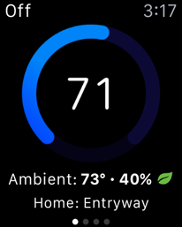 - Utility watch face complications now show the full range of information as opposed to just temperature. They now also show the away status, HVAC mode, HVAC status (heating/cooling/off), ambient temperature, and humidity. Everything that was previously only available on the large modular watch face complication. Here's what the new complication looks like: