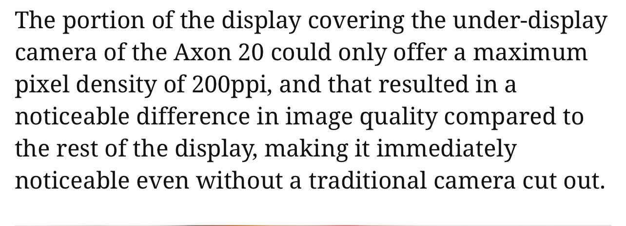 The under screen camera leads to a noticeable issue with the display (like the other devices doing it that way).