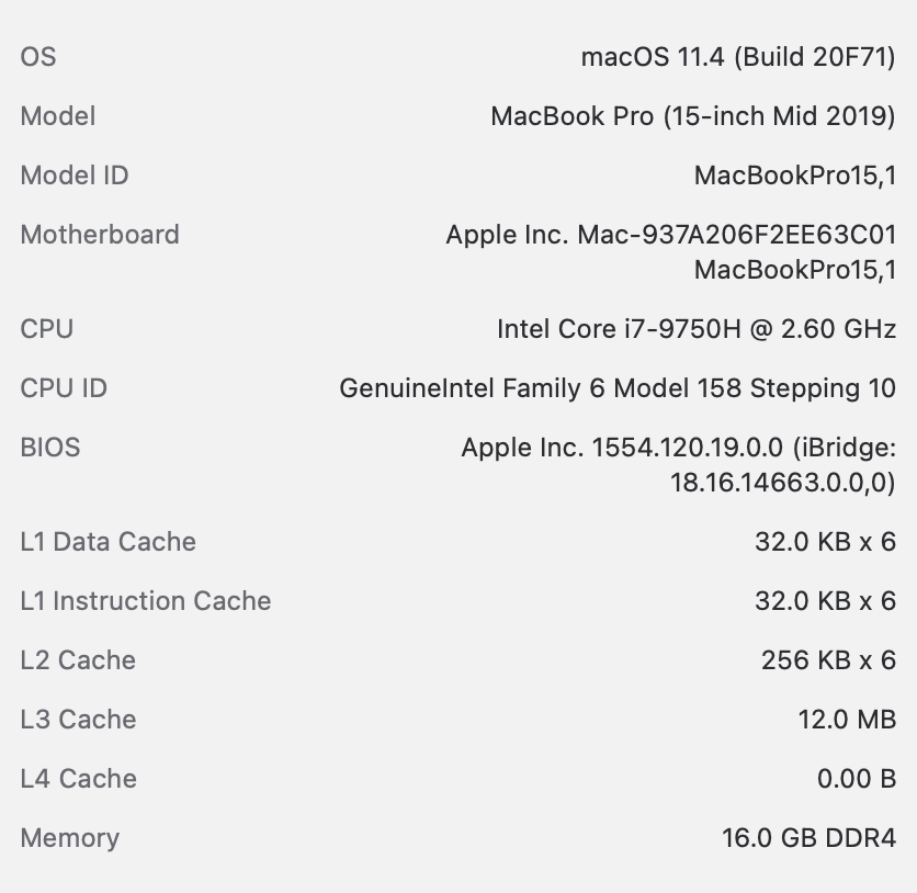 | iMac 2014 5K | MacBook Pro 2019 15,1 | |