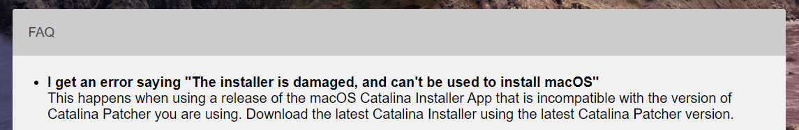 Help! Im trying to install it on a mac pro 3,1 the creation of the usb installer went all ok without errors but after boot I get the message (This copy of install macOS Catalina application is damaged, and can’t be used to install macOS. Btw I had previously installed it in the same machine with the same method. Just this time I get that error message. Also the creation of the bootable USB with the patcher went ok.