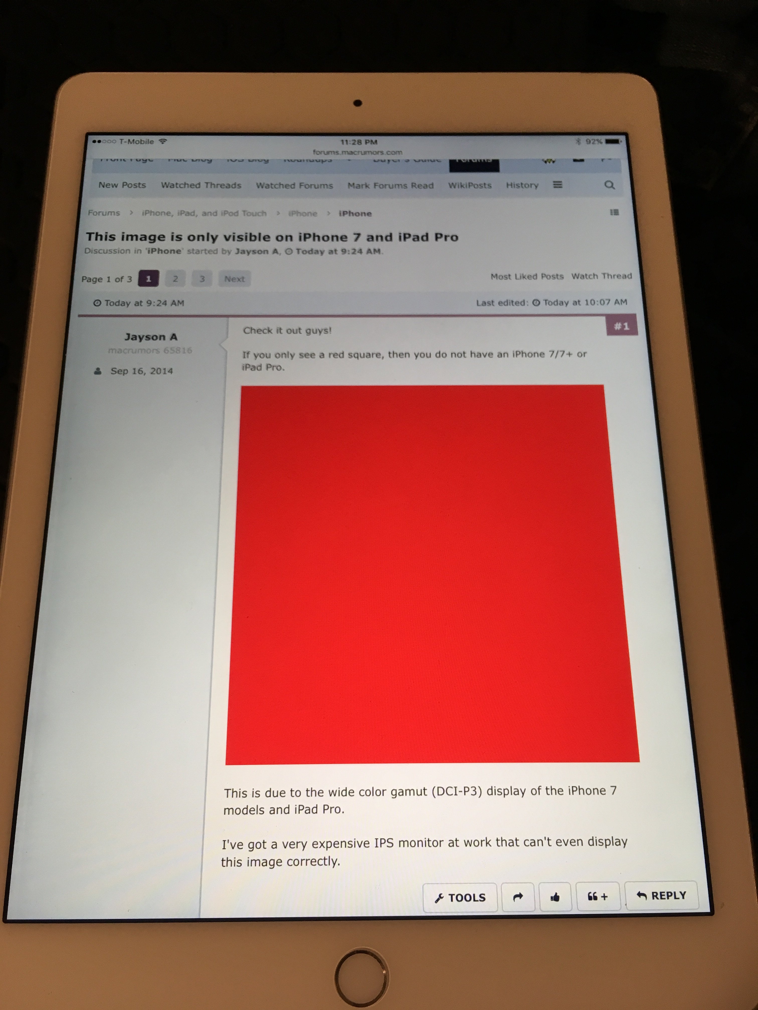 Your display may be adjusted so the image appears, but that does not technically mean your display can display every color that the iPhone 7 can.