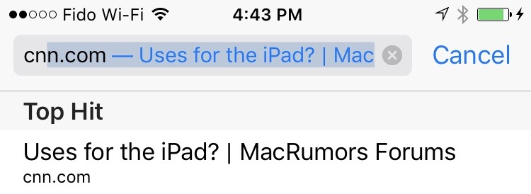 URL bar shows two different things: CNN and Macrumors. That's weird and potentially unsecure.