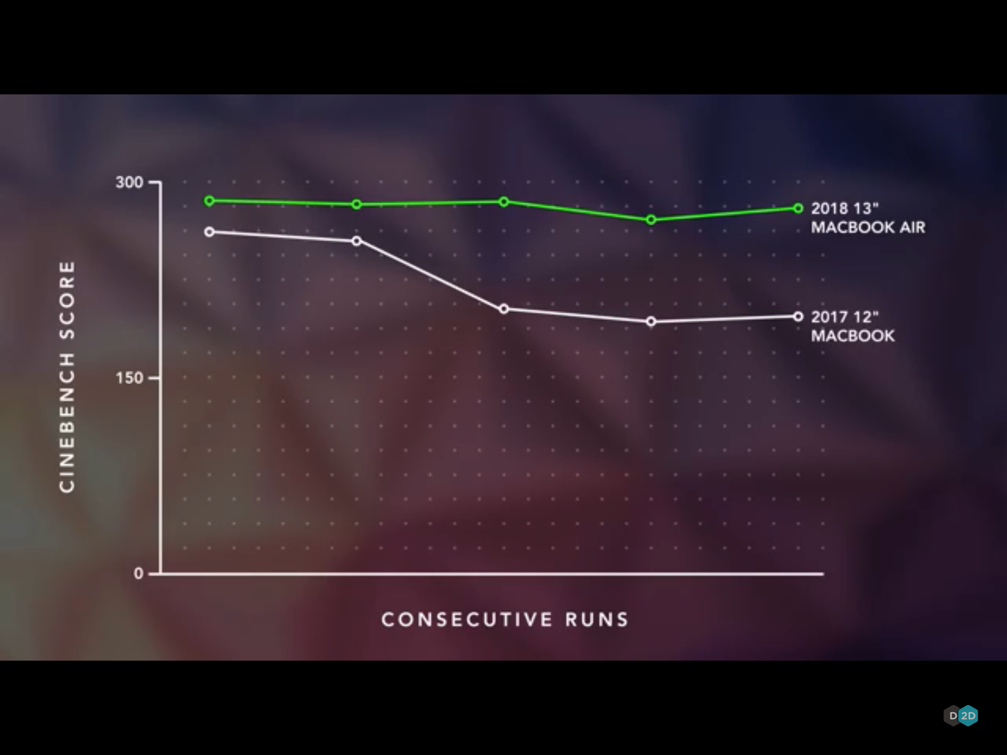 Interesting. AppleInsider should have run Cinebench a few more times then (the Air dropped to only 3% faster than the MacBook i5).Notebookcheck's 2018 MacBook Air review with the repeated Cinebench test: