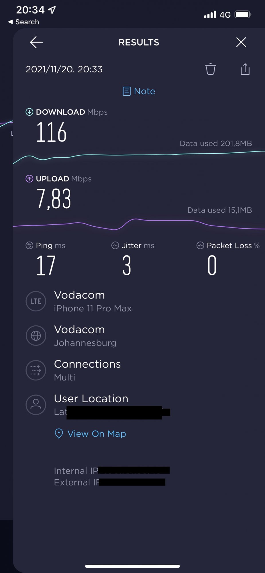 This is my 4G speeds on my current provider here in South Africa, I believe Vodacom being part of Vodafone group is also partially owned by Verizon?