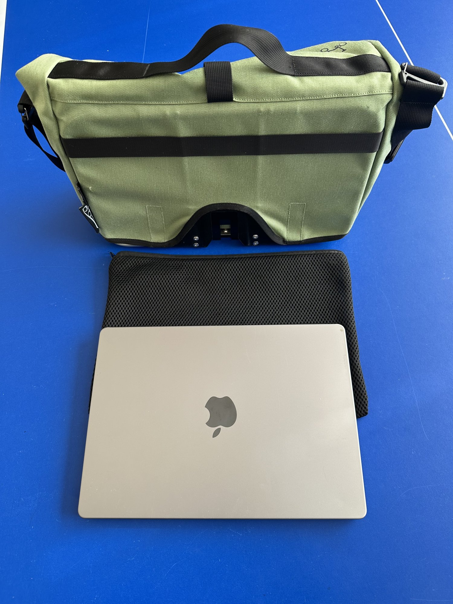 This is why I leave the 16" M1 Max MacBook Pro at home and bring a borrowed 14" M3 MacBook Pro with me on trips. There's barely enough room for the 14".View attachment 2465081