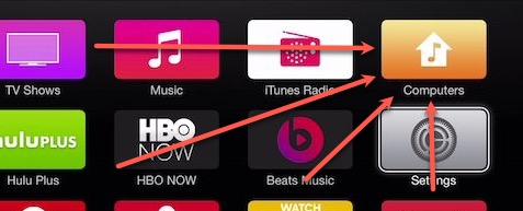 SHOULD (also) be visible in the Photos app on AppleTV, but Computers is where they are accessible via either of the above options. AppleTV Photos app seems married solely to iCloud-stored photos.