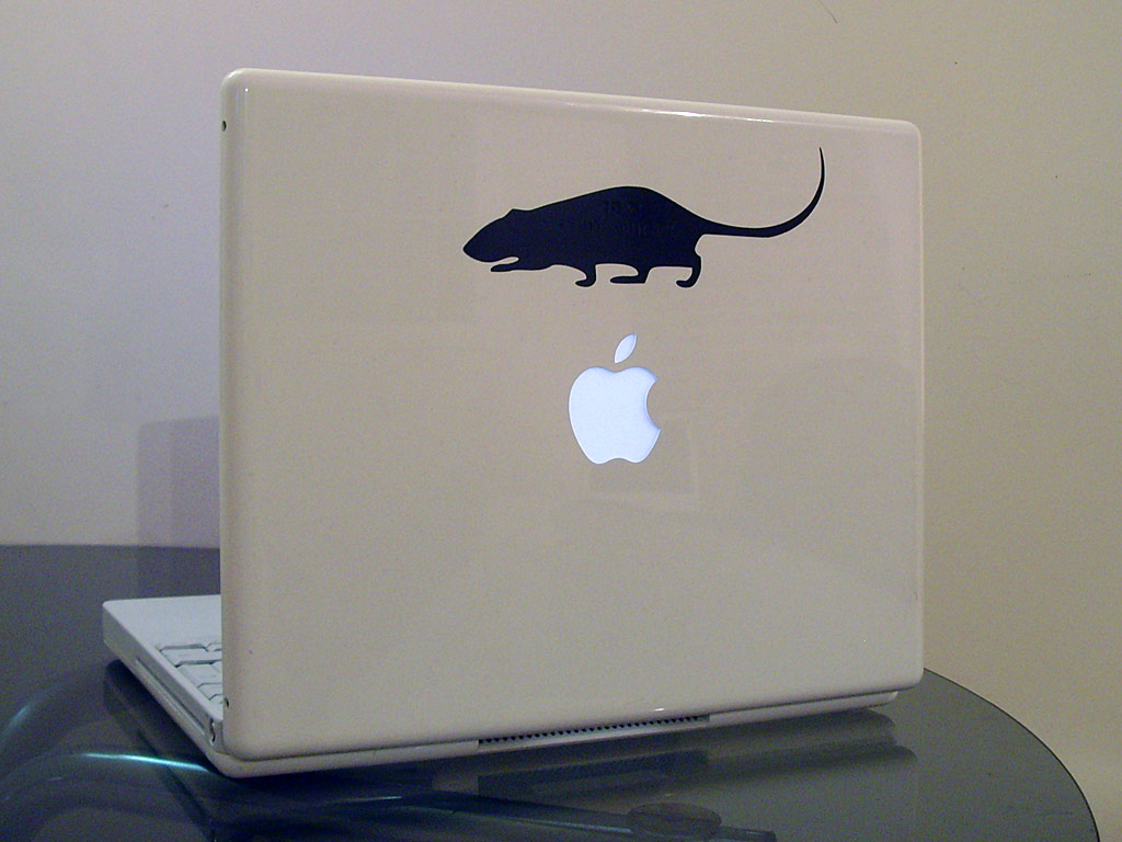 Looking good I missed the connection though LOL!!I myself had to 'customise' my G4 iBook when it arrived with the original owners (a school) details engraved in embossed security lettering on the front....bonus point for making the rodent connection