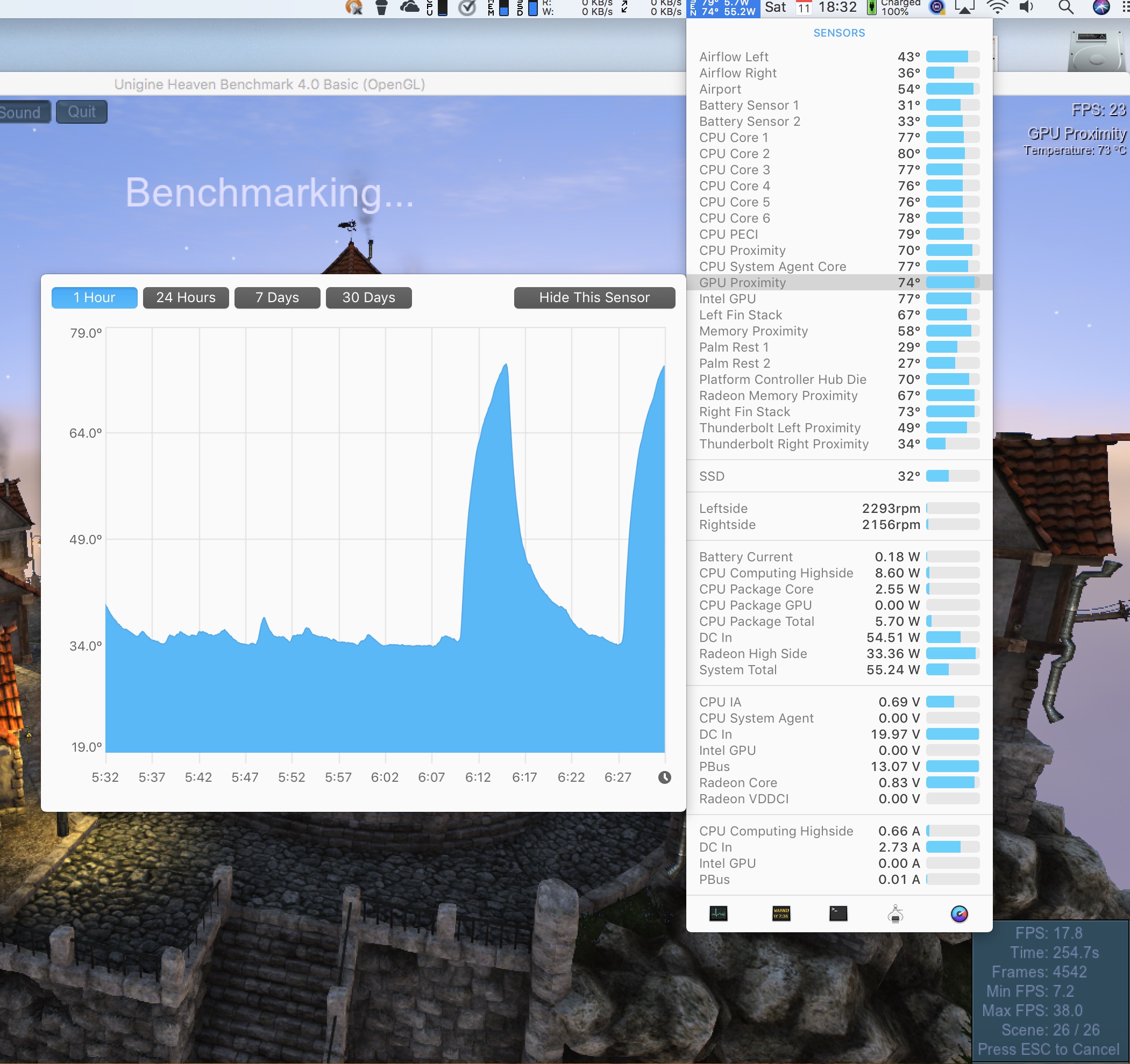 That may be more complicated, I guess we could use iStatMenus on Mac to capture 'GPU proximity' sensor (Valley and Heaven work on Mac) while running benchmarks, on Windows 3dmark saves the logs for temps, frequency and utilization, but if you look at the screenshots they don't look realistic at all (spikes to 120C, and flat in general), except for FPS, I think the driver doesn't present the information yet and 3dmark cheats by calculating the values instead of reading the sensor.