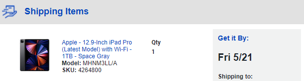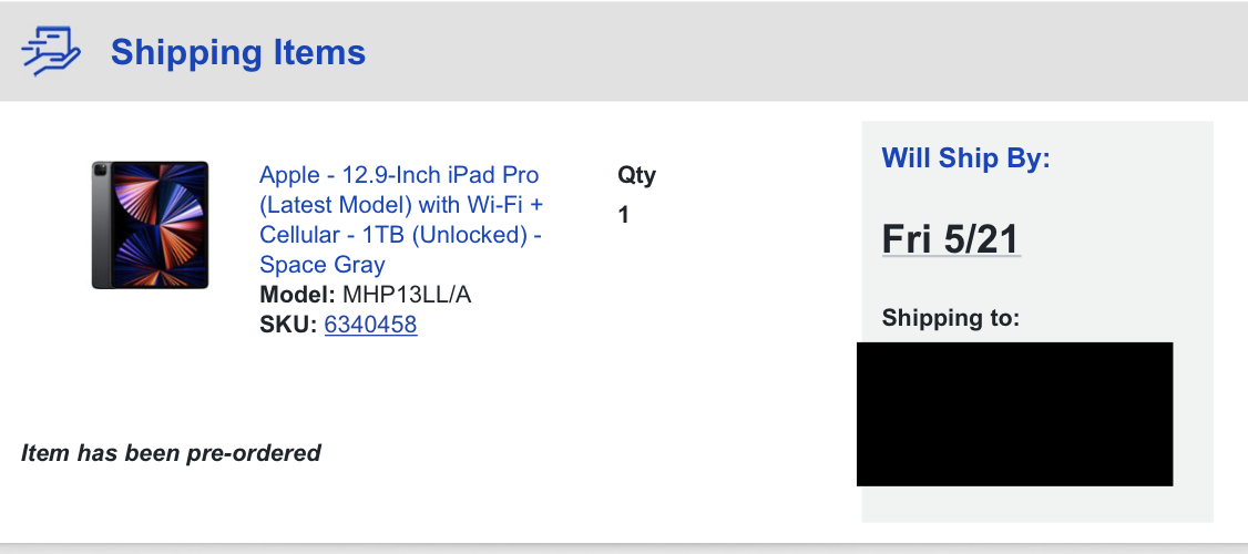 That email on the 6th does not say Get it by the 21st... it only acknowledged the release date for the iPad Pros.The BestBuy email I obtained on May 6th says “Get it by - Friday 5/21” I ordered within 1min of preorders going live.